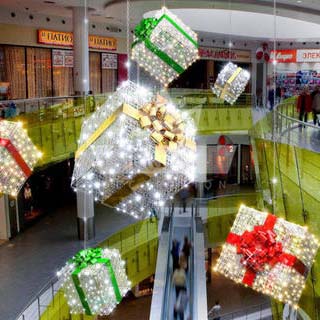 Световая декоративная фигура Подарок - яркое популярное украшение торговых центров и других пространств.
