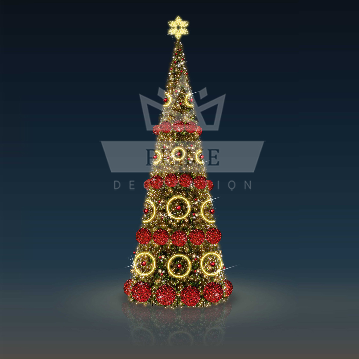 Искусственная уличная елка с комплектом оформления Шары и кольца - отличный способ украсить город, создать праздничную атмосферу и порадовать жителей и гостей в зимний период.